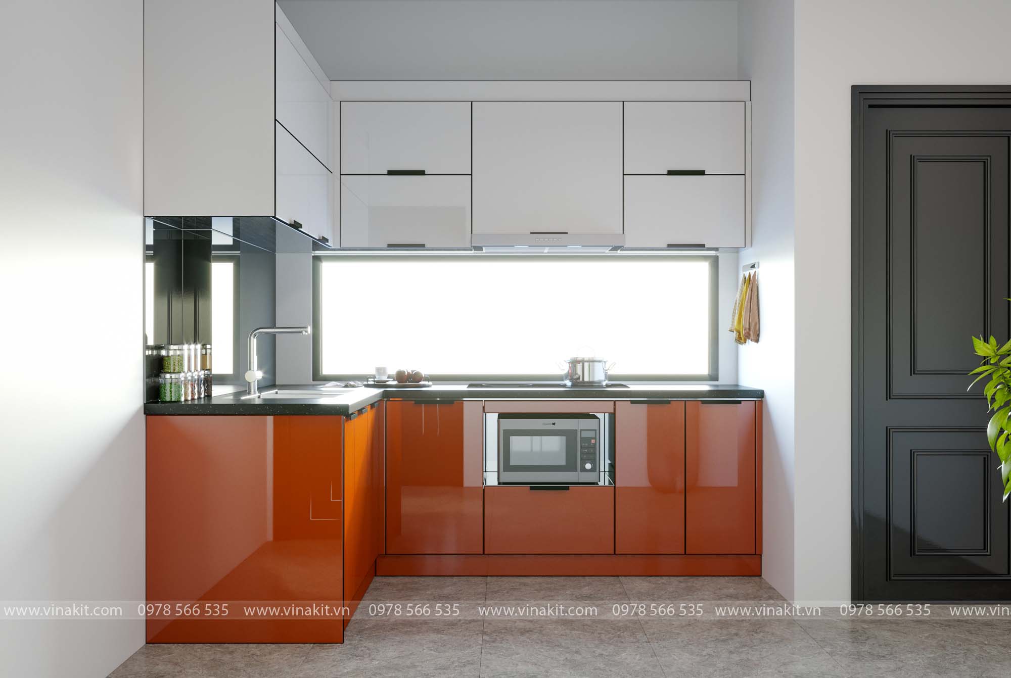 Chất liệu: Tủ bếp inox cánh kính cường lực