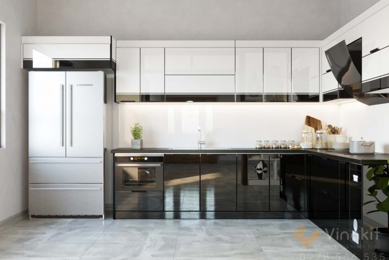 Chất liệu: Tủ bếp inox cánh kính cường lực