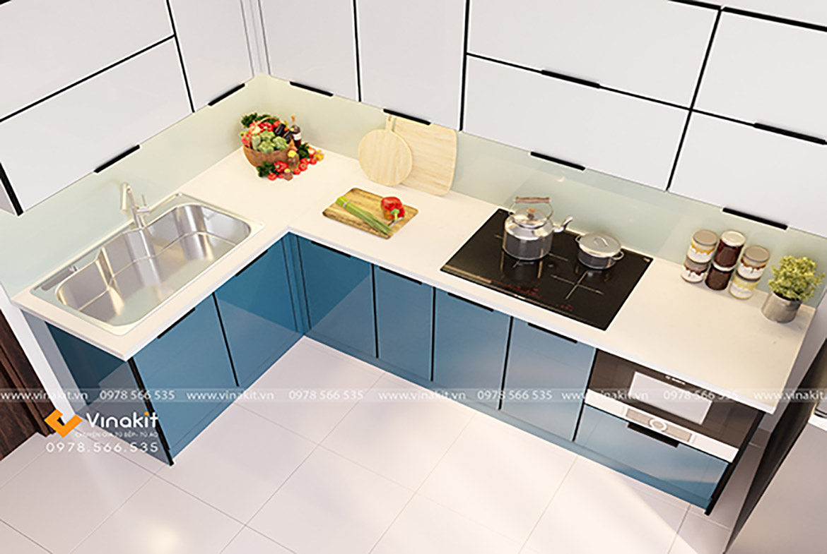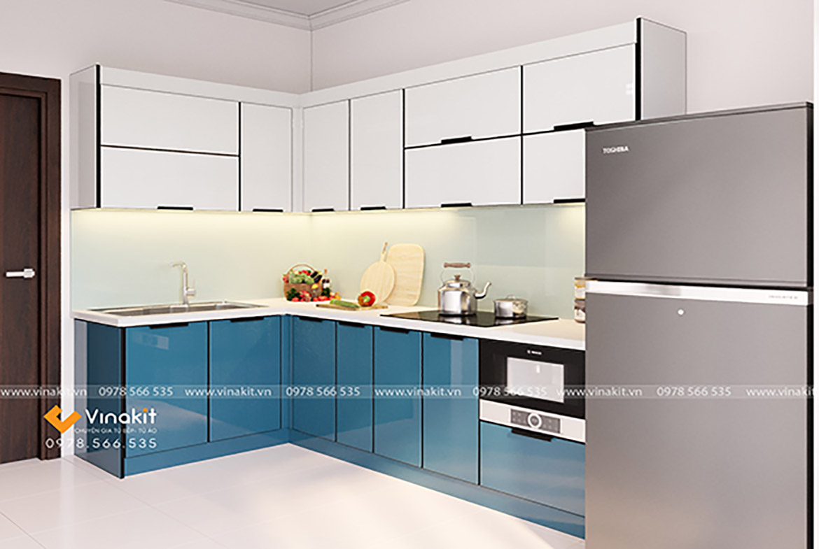 Chất liệu: Tủ bếp inox cánh kính cường lực