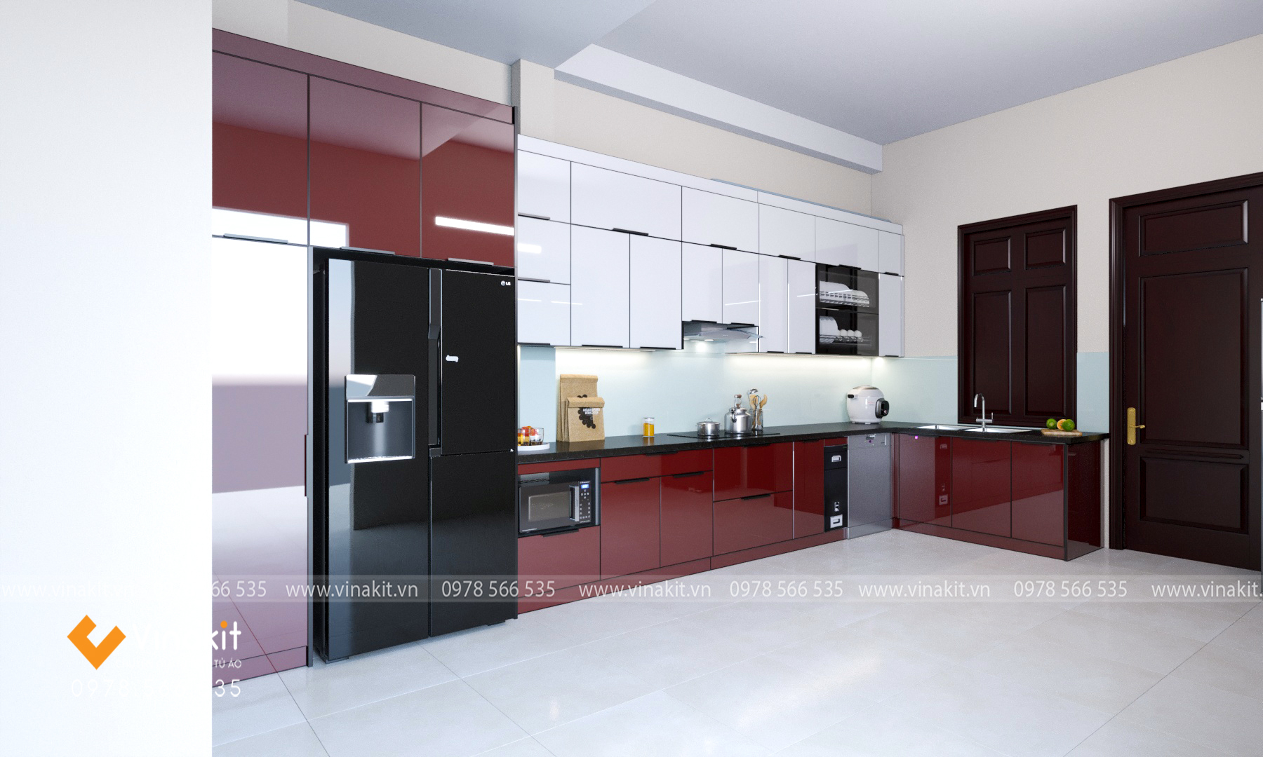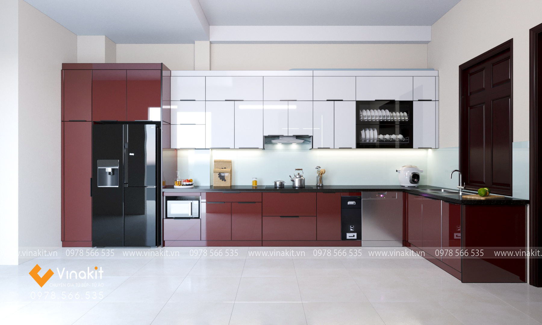 Kiểu dáng: Chữ L có tủ kịch trần và tủ lạnh