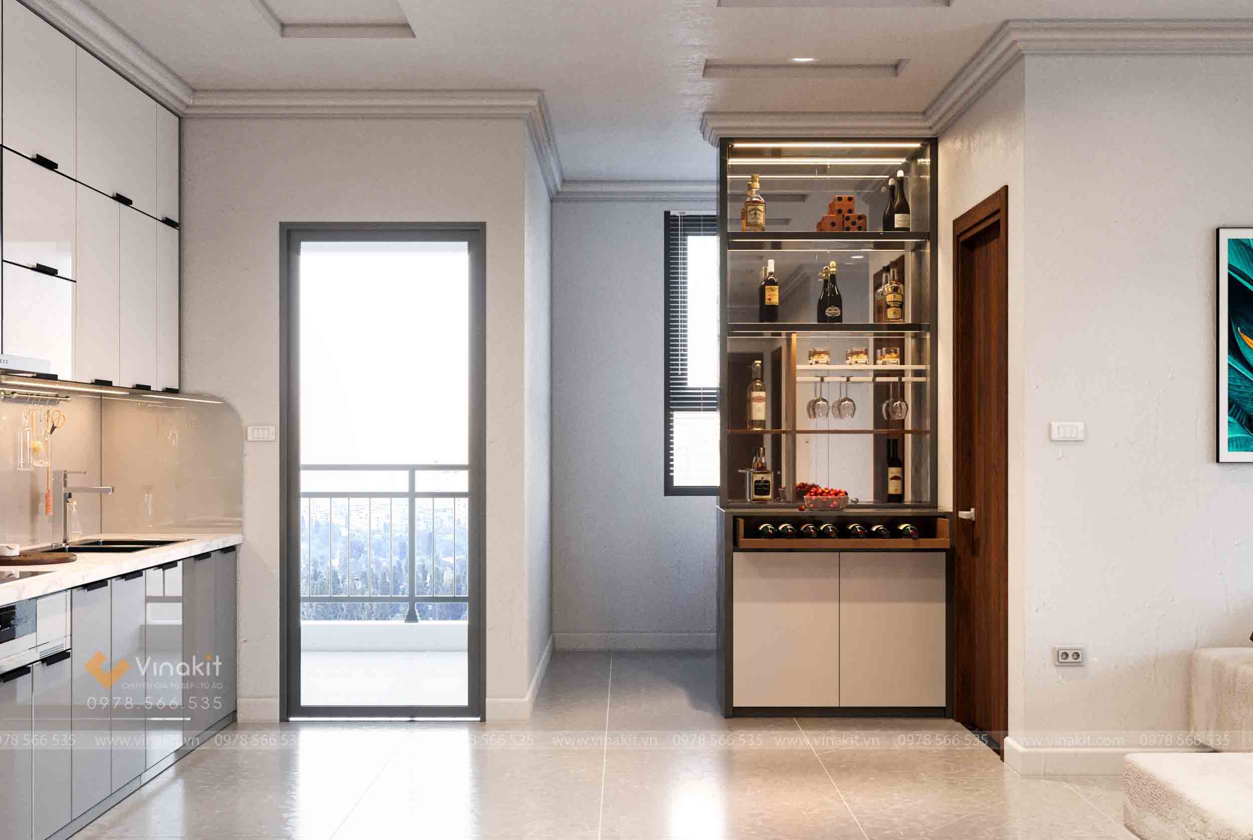 Em chào anh, bộ tủ bếp anh đang quan tâm được làm từ khung inox hệ modul rời CNC kết hợp cánh kính cường lực nhập khẩu ạ.