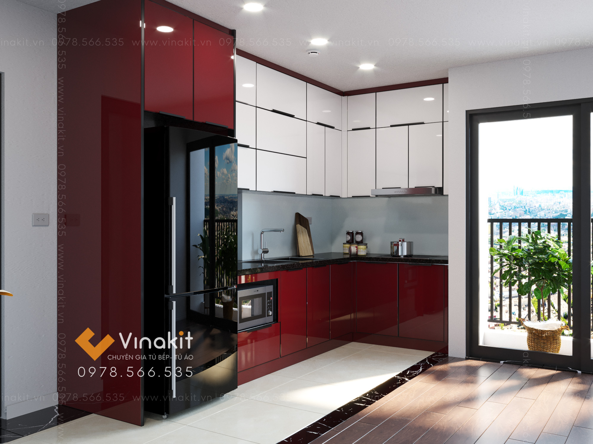Chất liệu: Tủ bếp inox cánh kính cường lực